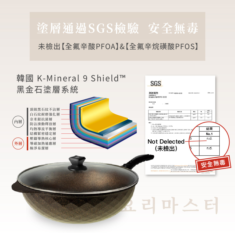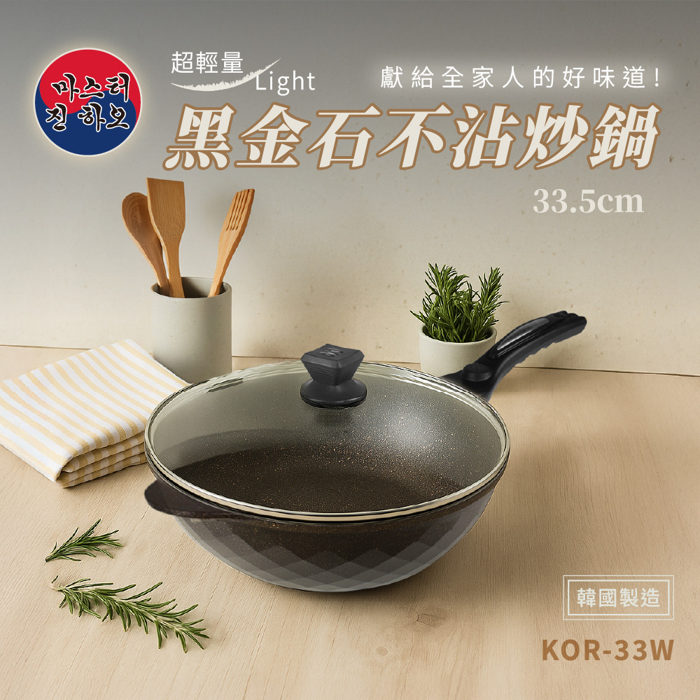 【韓國 마스터 진하오 (金浩大師)】韓國製 黑金石不沾炒鍋 33.5 CM