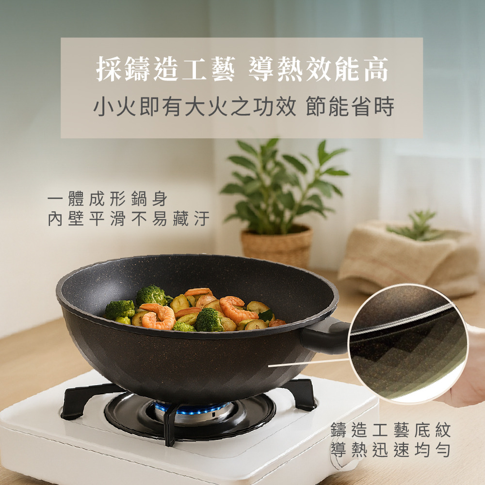 【KUKKAR 韓國家】韓國製 黑金石不沾炒鍋 31 CM