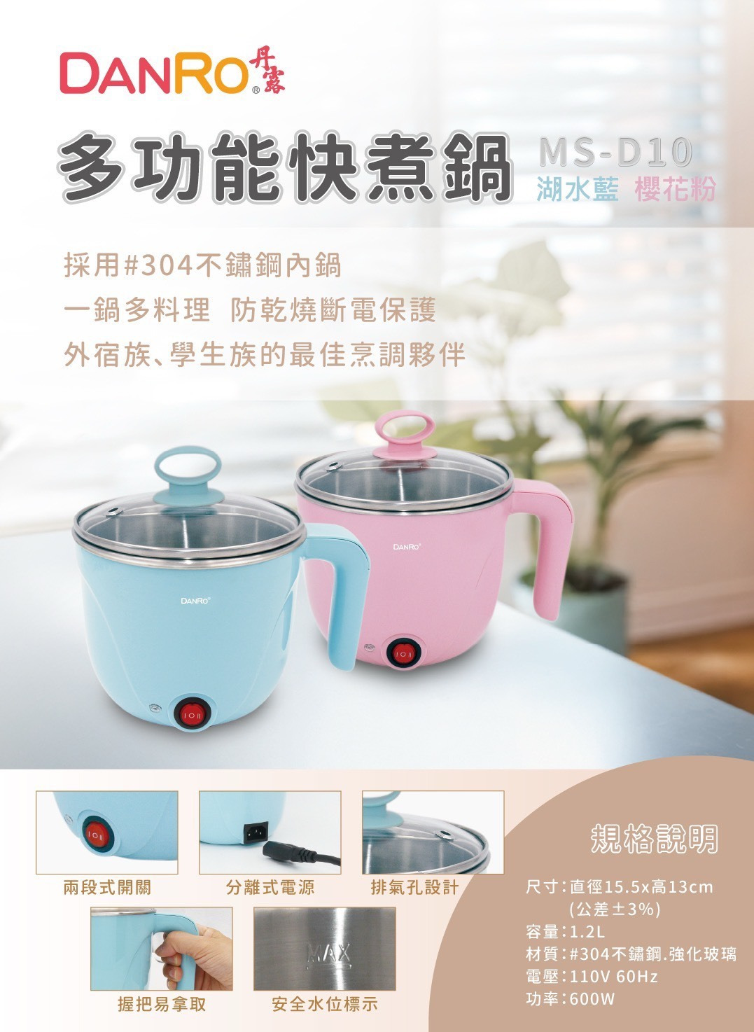 【丹露 DANRO】多功能快煮鍋1.2L- #304不鏽鋼內鍋